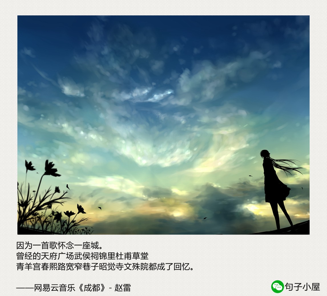 因为一首歌怀念一座城。曾经的天府广场武侯祠锦里杜甫草堂青羊宫春熙路宽窄巷子昭觉寺文殊院都成了回忆。