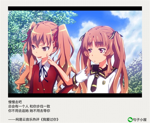 “慢慢走吧 总会有一个人 和你步伐一致 你不用去追她 她不用去等你”