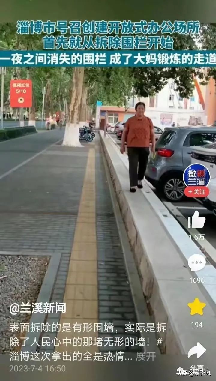 而淄博,偏偏坏了“规矩”,为了方便跟老百姓接触,竟然把围栏都拆了,你这让那些习惯了在机关大院里坐着发号施令的官老爷们情何以堪?