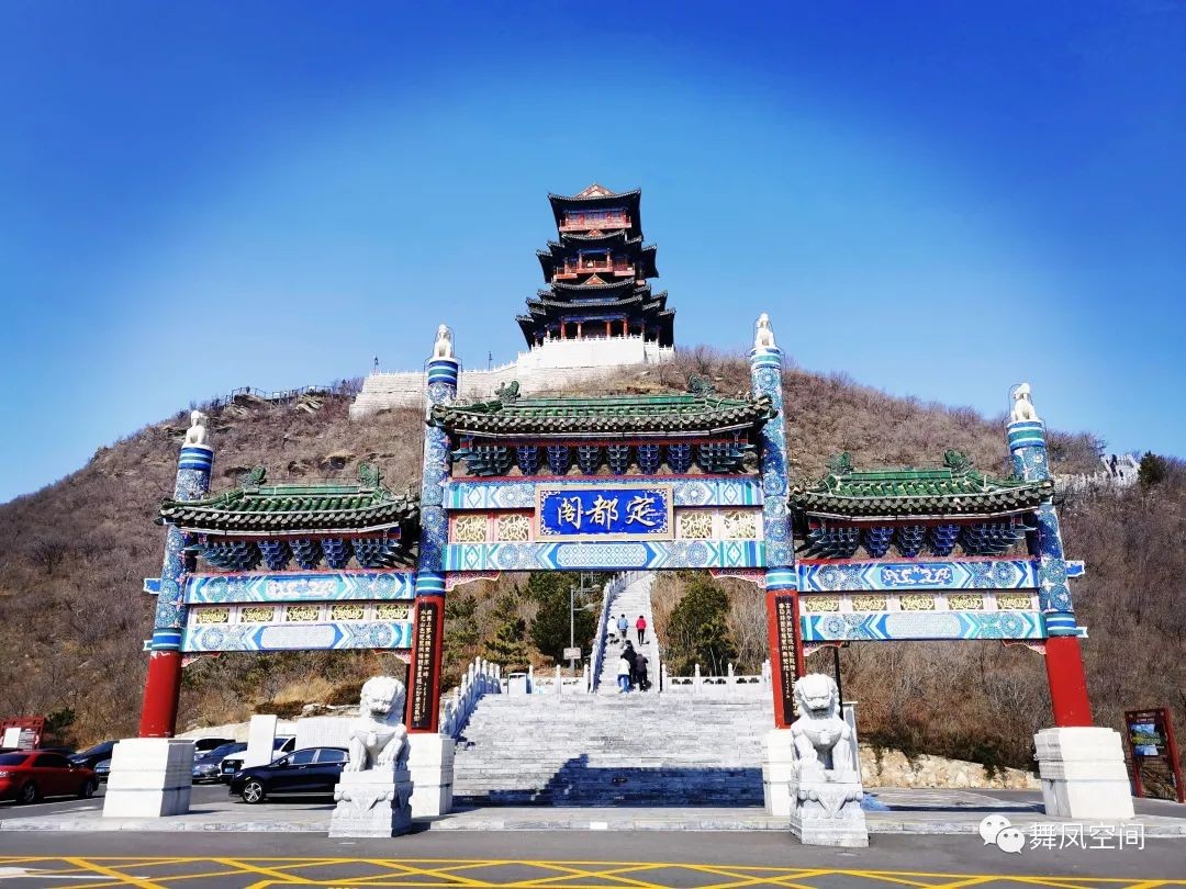 驱车一路向西,即到定都峰,盘旋上山即见牌坊,再登台阶两三百许,来到阁下。
