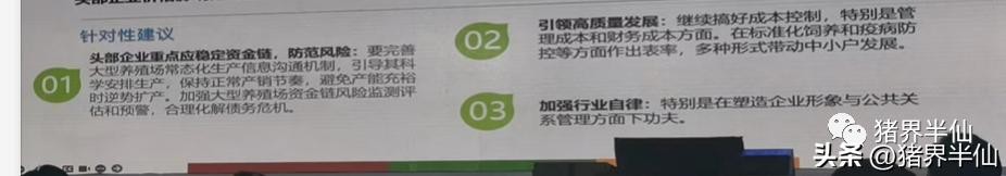 通俗一点看,建议就是要保障资金,提高技术水平,降低成本,这也就是前文提到的既要有钱,还要把猪能养好,成本能降低。短期内养猪行业竞争现金流,但长远来说就是竞争成本。养猪人一定要有这样的认知,否则会被很残忍地淘汰出局。