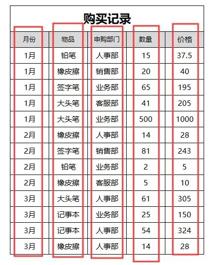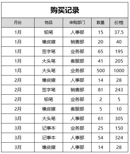 比如下图的购买记录表: