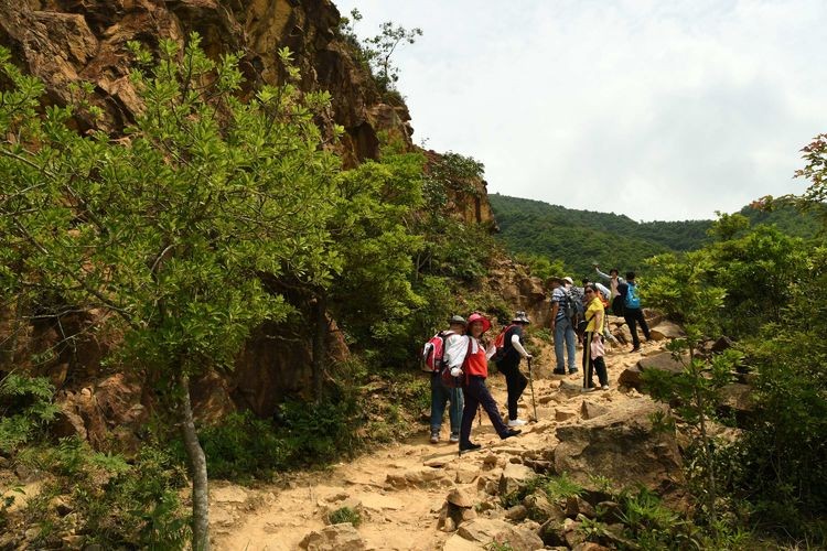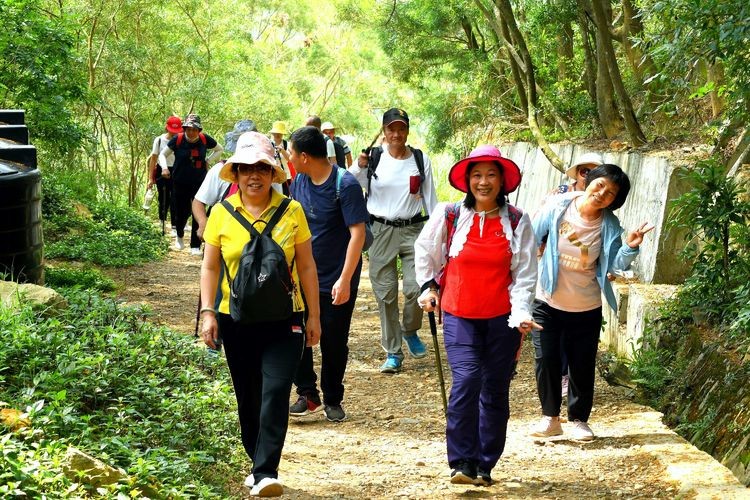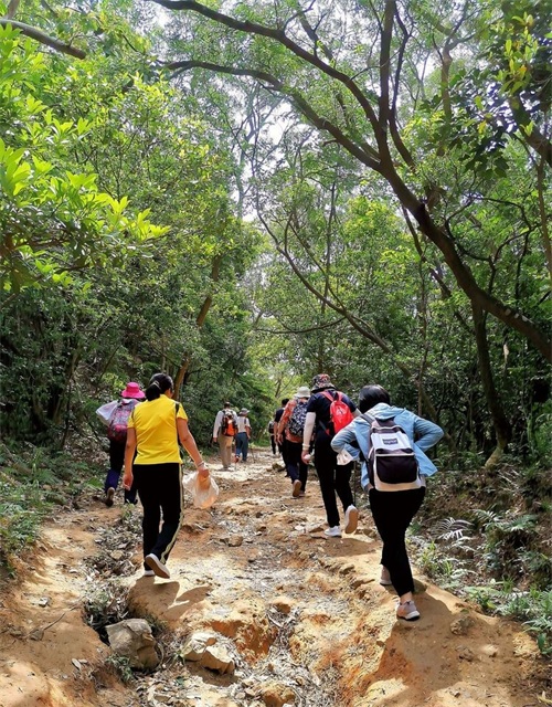 5月7日,各路人马准时于上午九时在莲塘长岭仙桐体育公园集合,我们选择了从蝴蝶谷方向攀登。不用动员,出发了老顽童们!