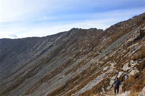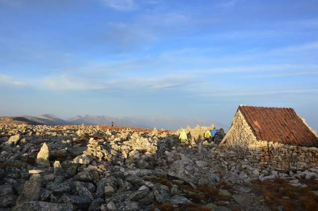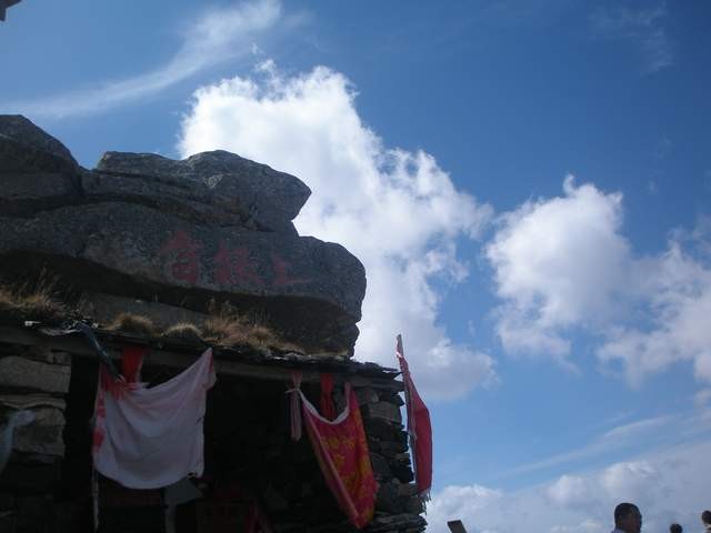 这段路程很是考验人的耐力,不是很难走,就是路程长。翻越不大的几个山头,大约两个多小时,来到大文公庙。大文公庙,海拔3568米,这里住宿的人多些,等着看云海的,走不动的不想走的,形成一片很大的宿营地。