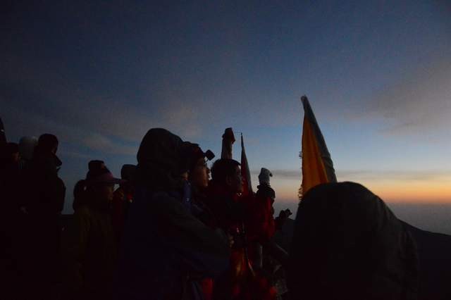 稀里糊涂睡到早上五点,起床摸着黑往拔仙台走,不要担心走错路,同行人很多。路不长,但是很陡峭,半个多小时,穿过层层大石头,成功登顶看日出。