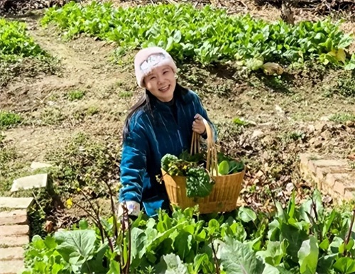 站在家乡的土地上拍照,董璇的脸上洋溢着幸福的笑容。