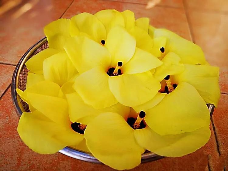 金花葵,别称野芙蓉,既可观赏,也可食用。