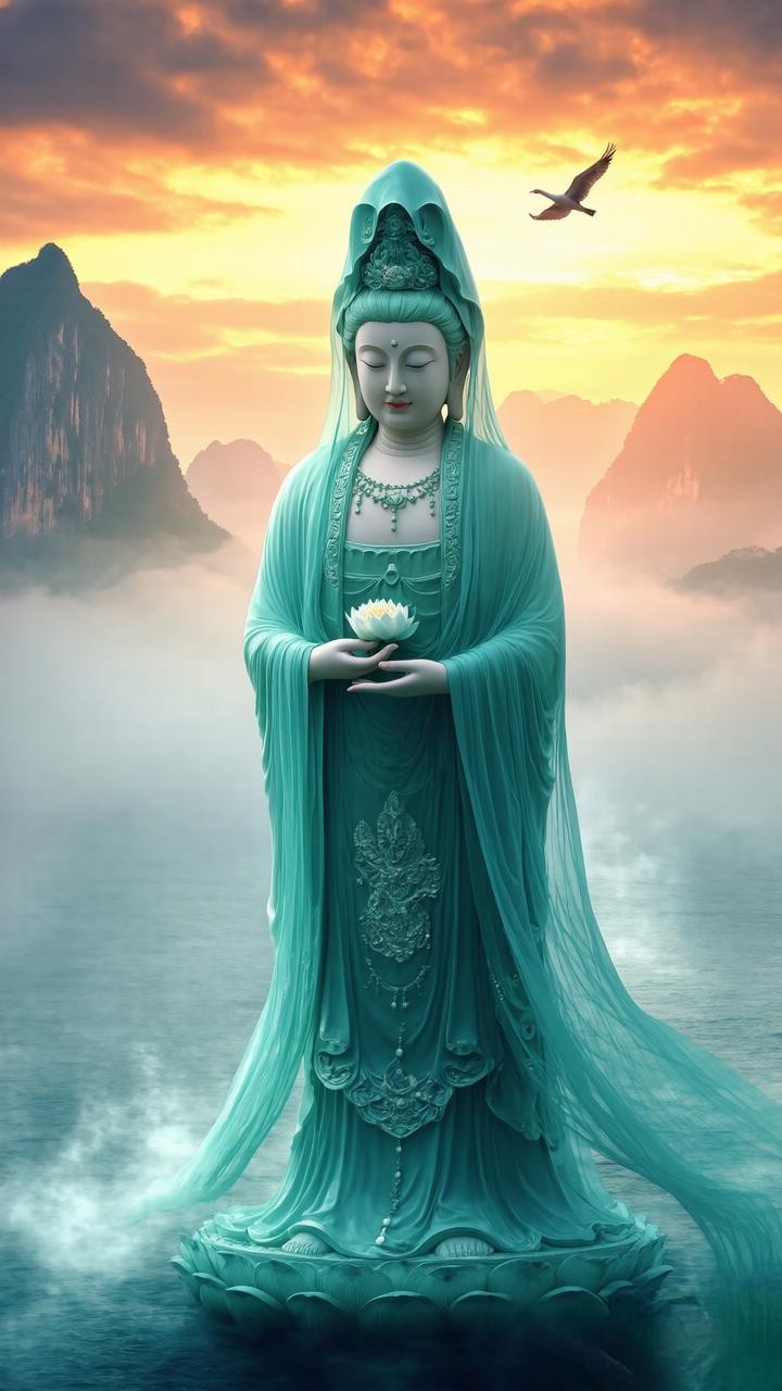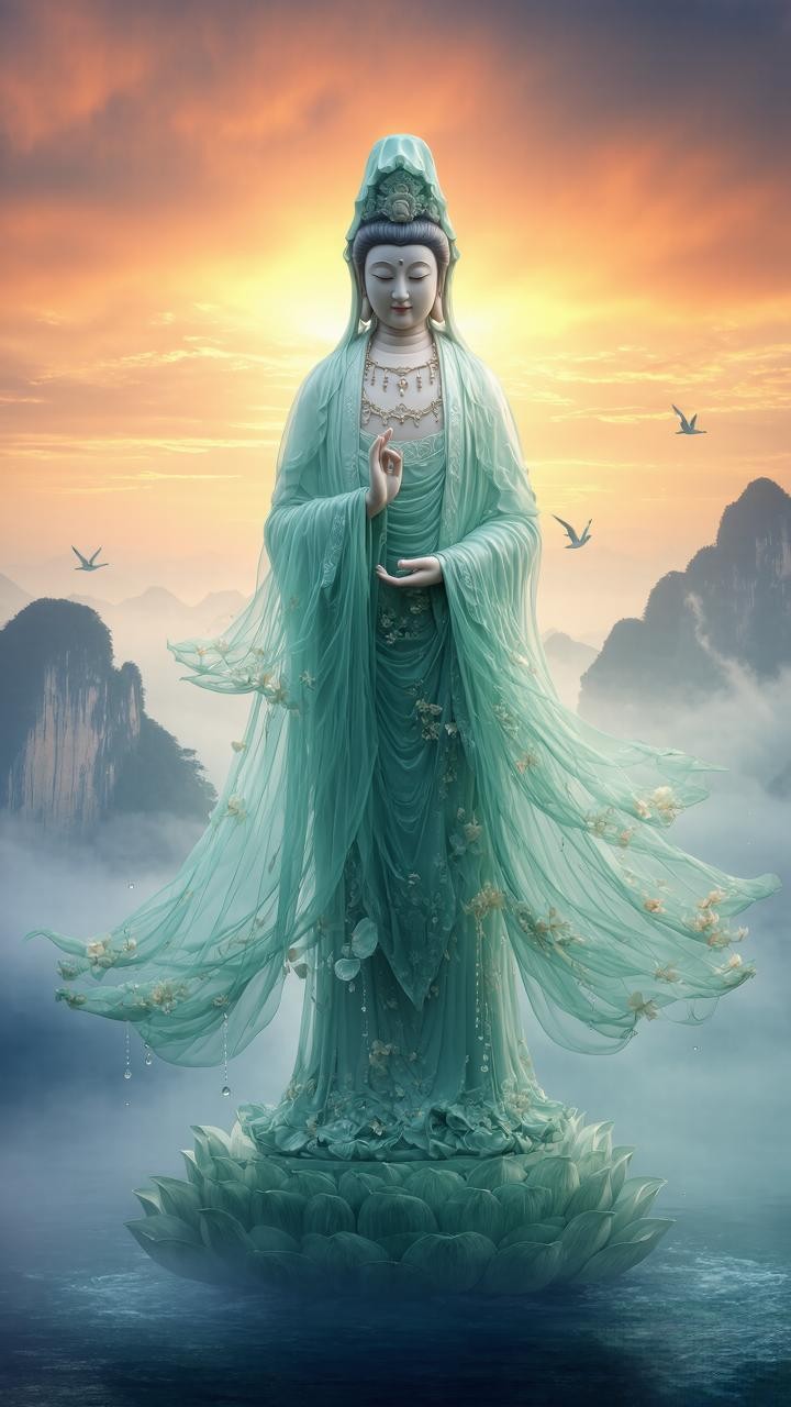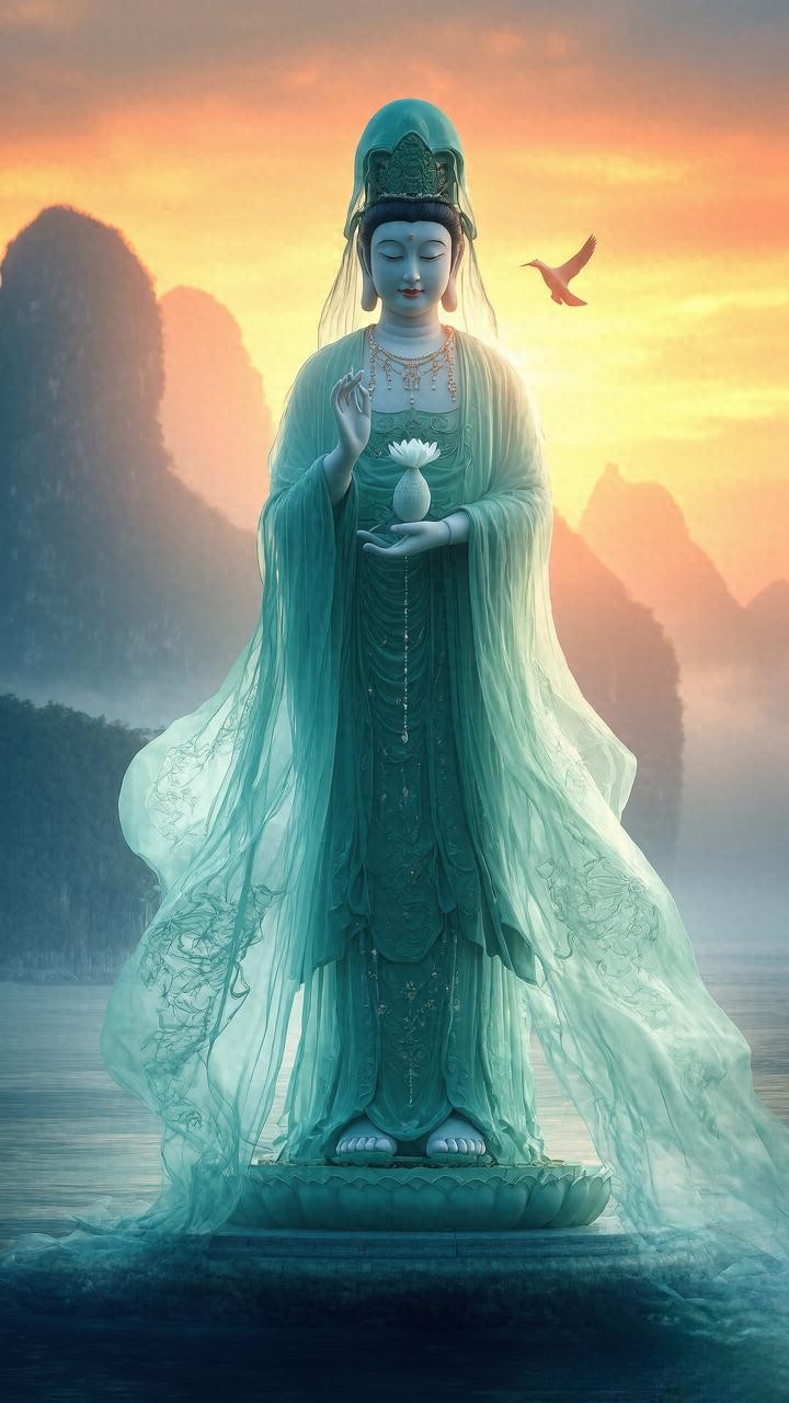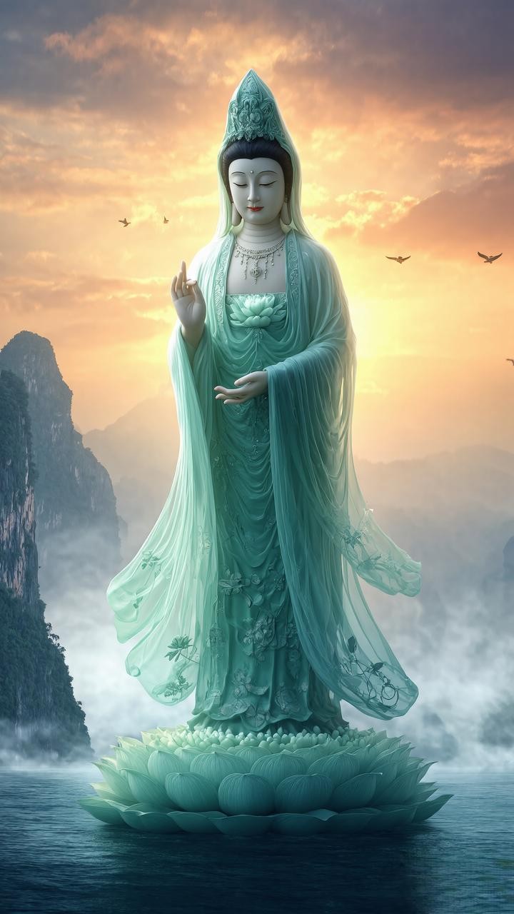 慈德的滋养:翠绿色如同肥沃的土地,象征着观音菩萨的慈悲无边,能够滋养众生的心灵与生命,给予人们希望与力量。
