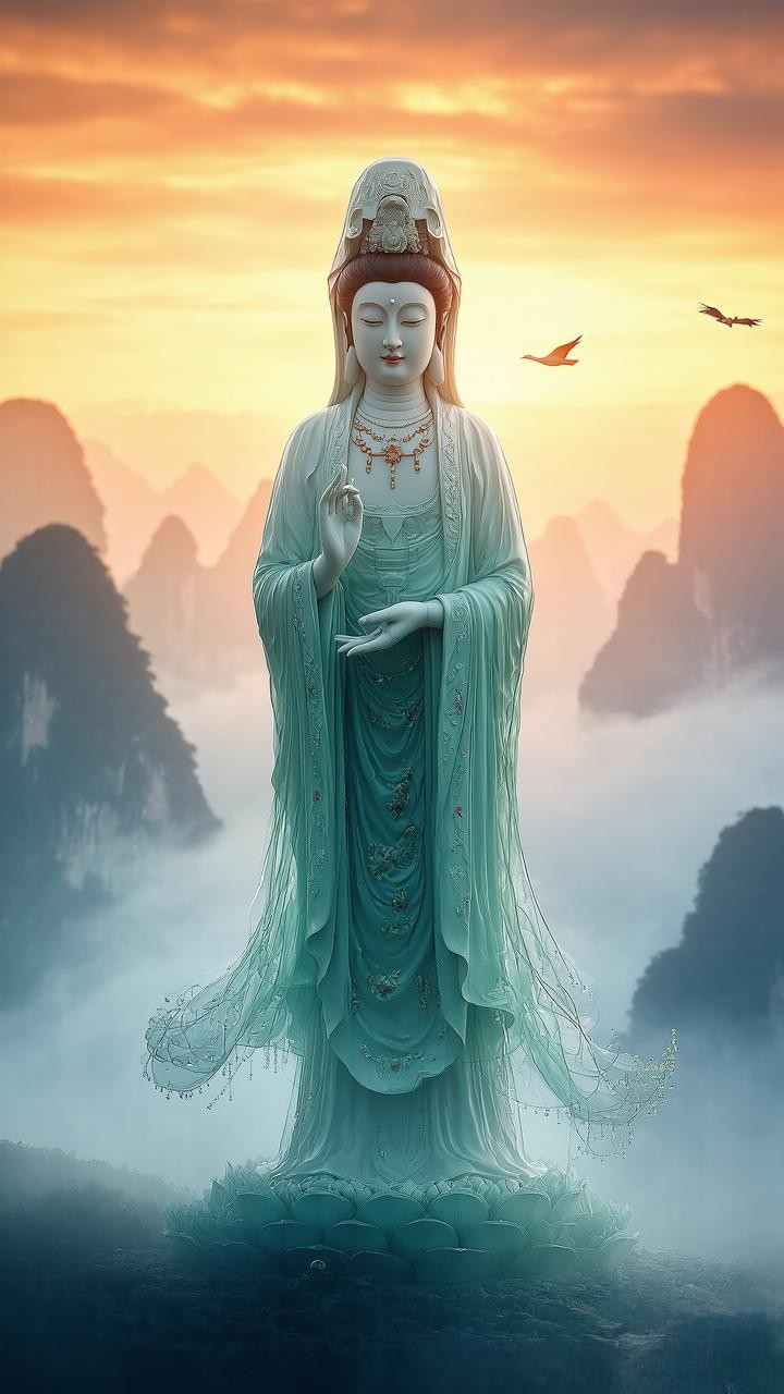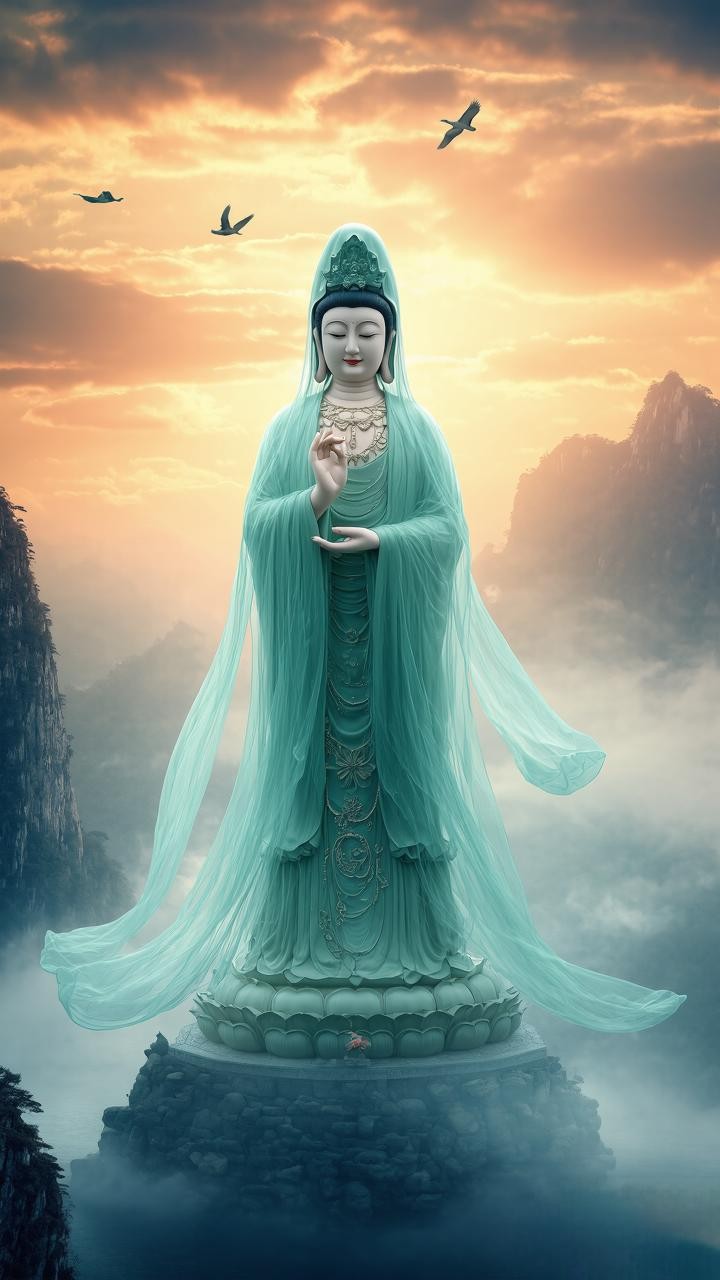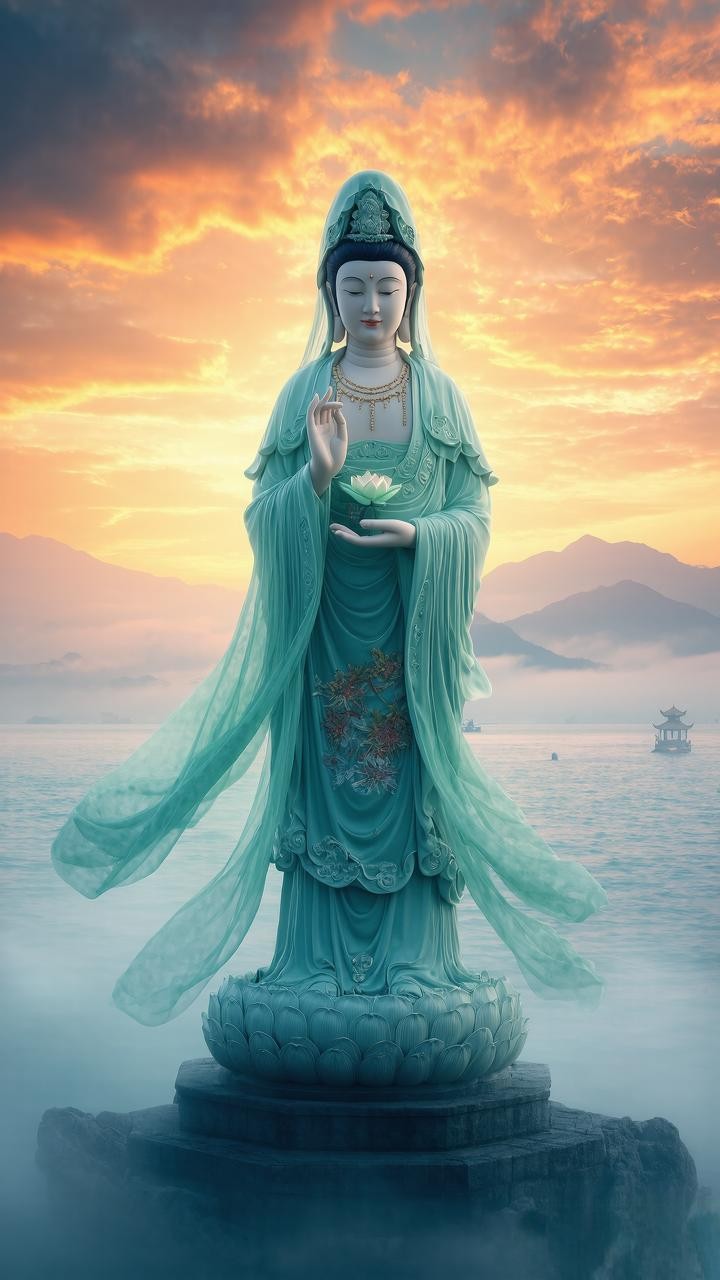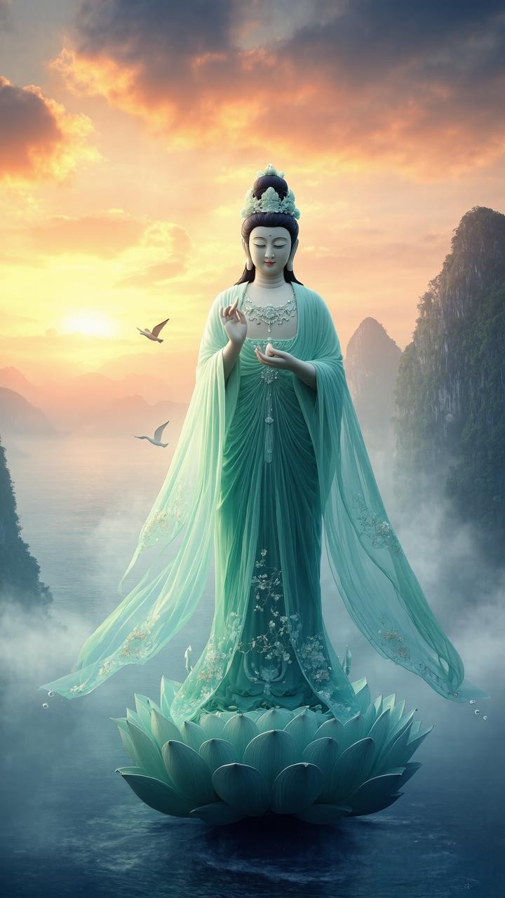 慈德的滋养:翠绿色如同肥沃的土地,象征着观音菩萨的慈悲无边,能够滋养众生的心灵与生命,给予人们希望与力量。