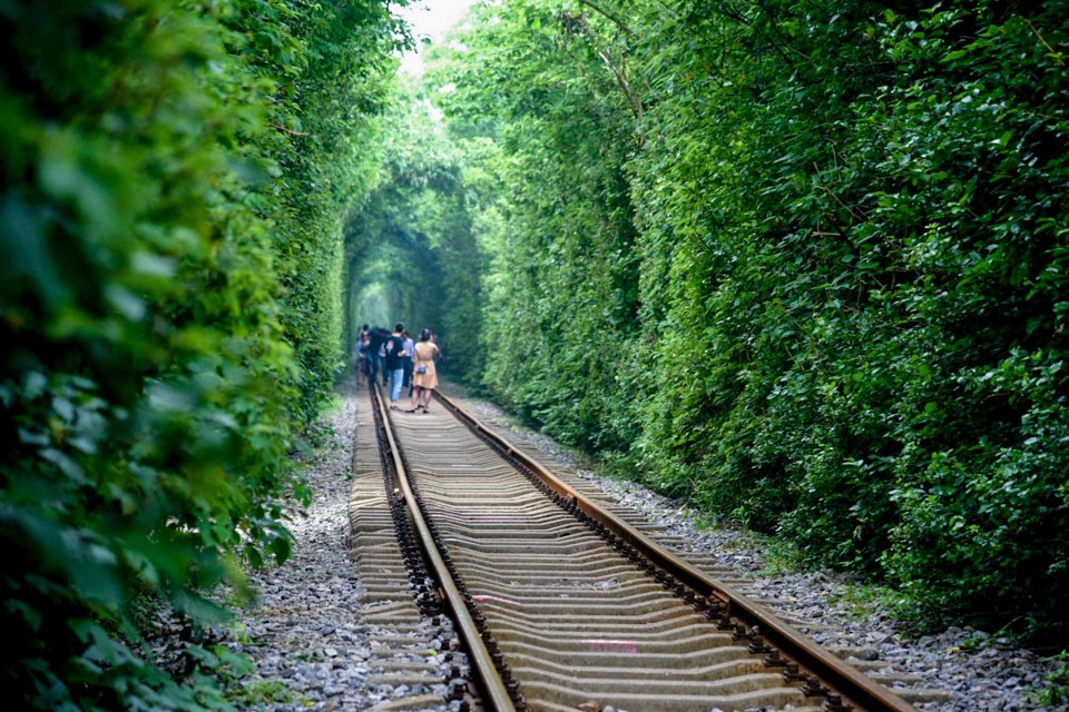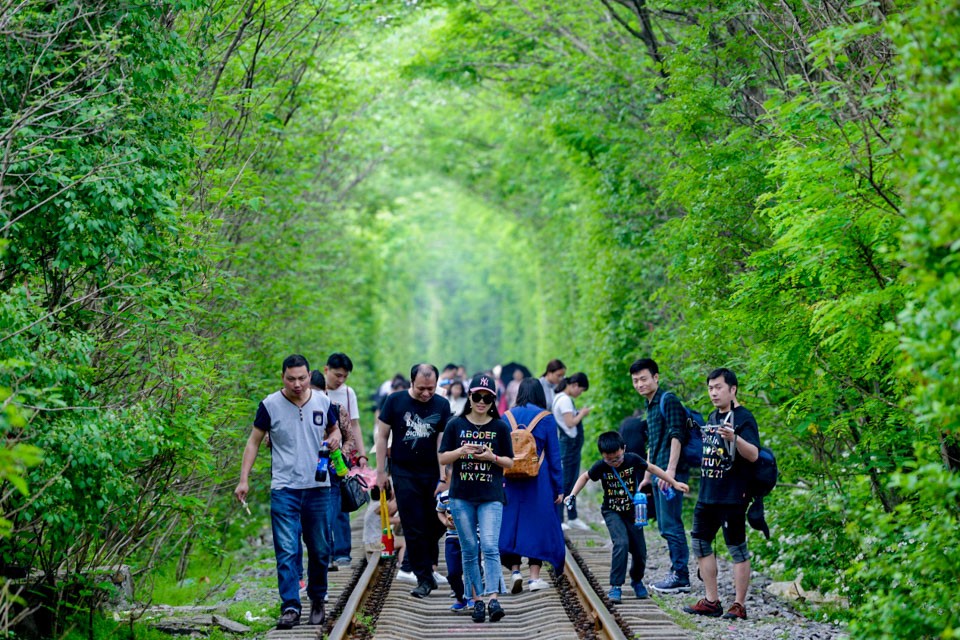 南京江宁区的一段铁路因被大量绿色植物环绕,气氛浪漫,而被网友称为“爱情隧道”,吸引了诸多居民与游客前来拍照。2014年,因为来这里打卡的游客增多,管理单位考虑到可能存在的安全隐患,一度想把铁路两侧的树木砍掉。所幸网友的坚持,才成就了这一段“爱情隧道”。