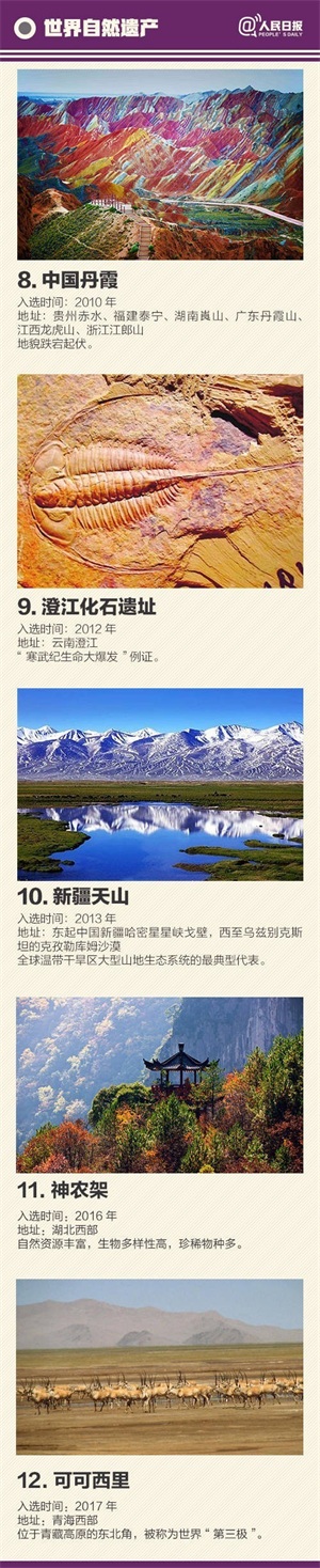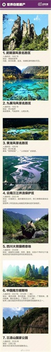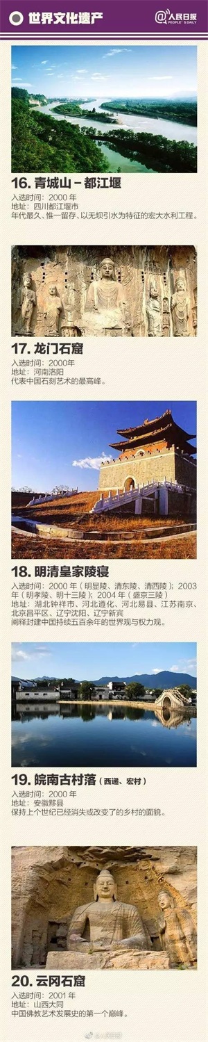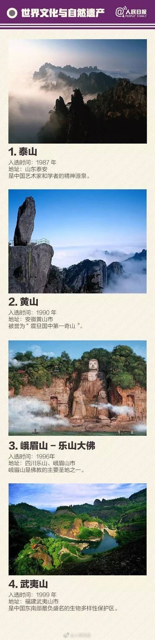 泰山、黄山、长城、莫高窟、布达拉宫、龙门石窟、杭州西湖……