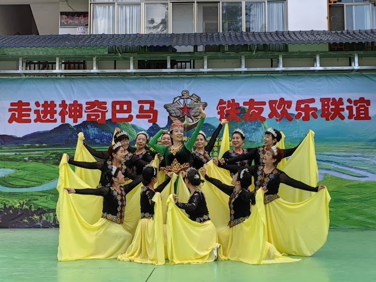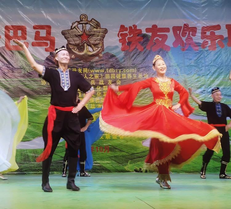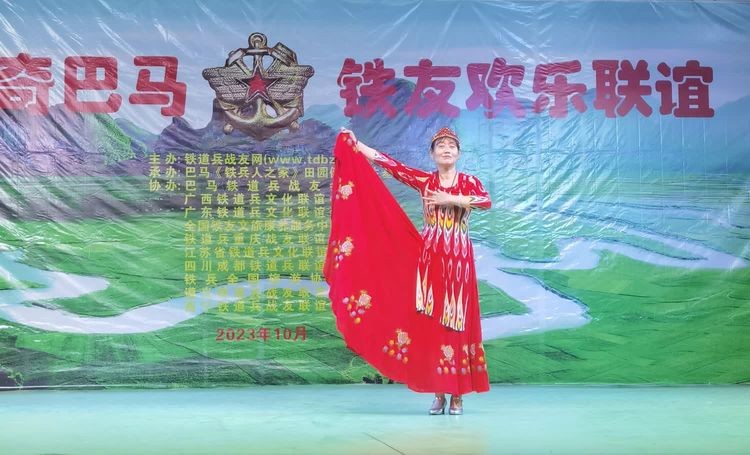 受铁兵基地邀请,新巴马人新疆舞团参加今晚全国铁道兵欢迎活动。文泉老师领衔舞蹈《我家门前一枝花》受到热烈欢迎和好评。