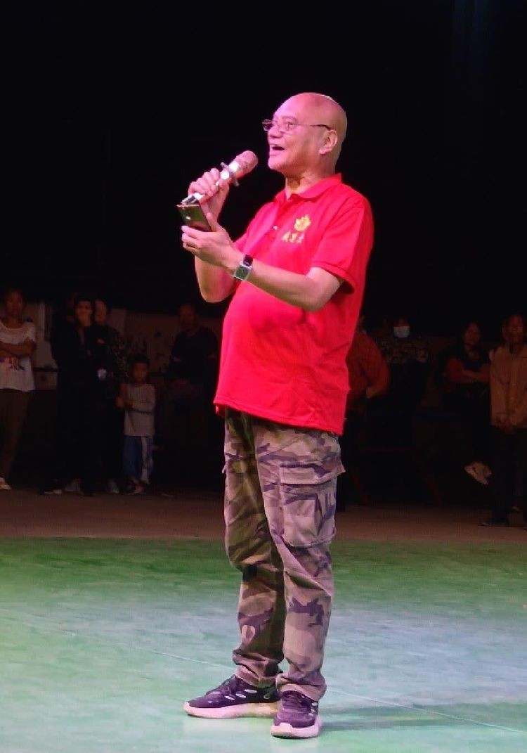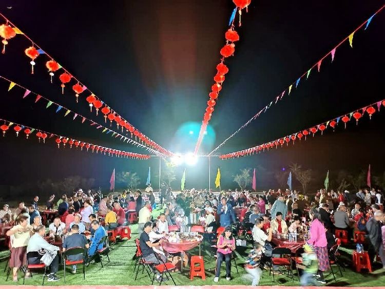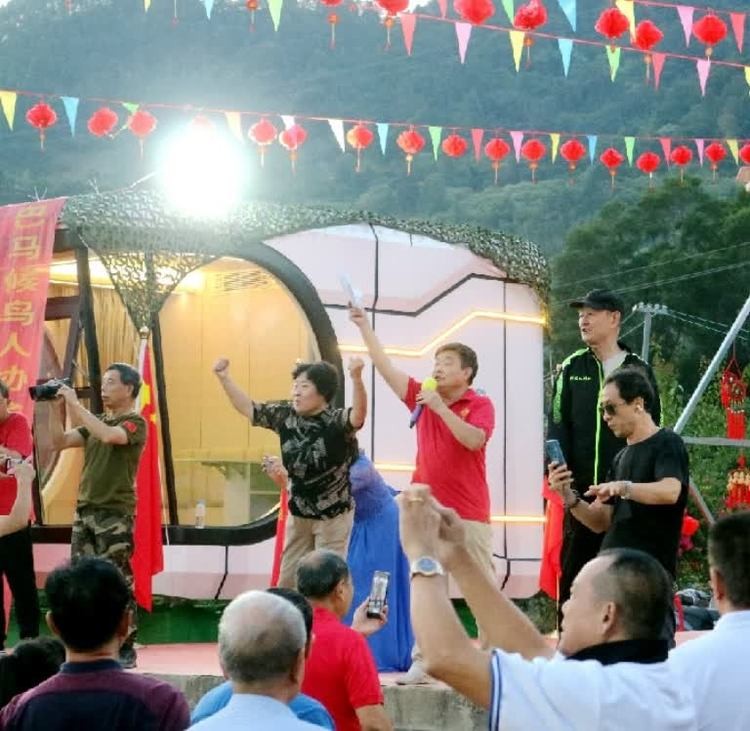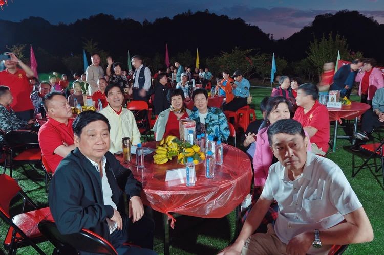 晚宴前夕,铁道兵战友网站长刘政湖战友亲自主持,因为一些战友航班、车程的延误,因故推迟了嘉宾介绍等环节,但在王积富战友邀请的当地巴马候鸟人协会、部分村民代表出席晚宴的衬托下,王董事长邀请献上的歌舞晚会使会议开幕的浪潮一浪高过一浪。
