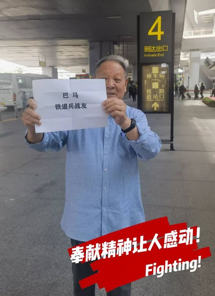 在南宁飞机场的接待大厅,我看到70多岁的老战友王林山,手拿着“巴马铁道兵战友”的接站牌站在那里,瞬间泪目!