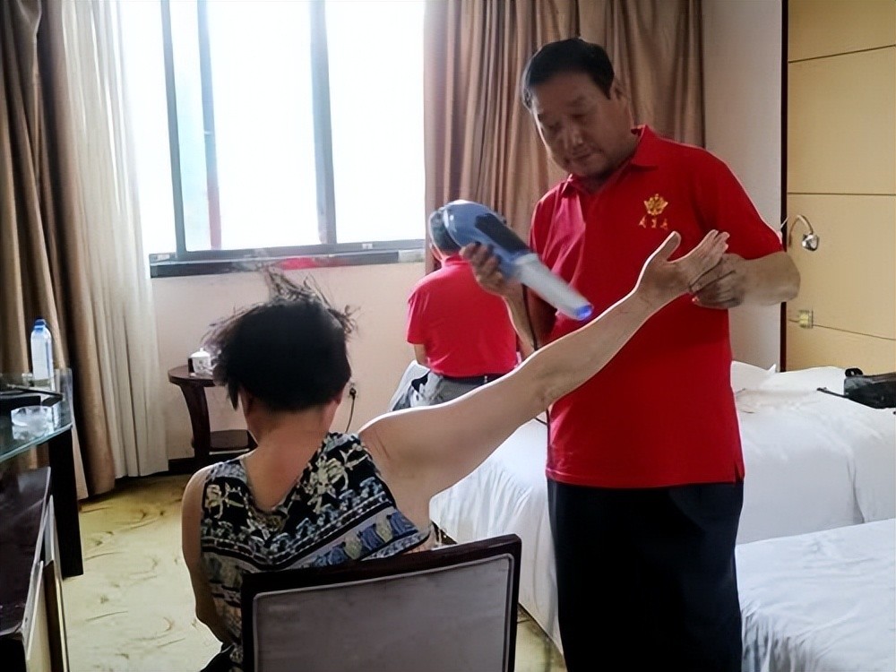 中午时分,笔者再次来到雒顺林的房间。1011房间里,热风扑面。据雒顺林战友说,曾出国从事治病救人工作就达20年。这次为了治疗的方便,仅电子光波理疗仪就带了三台,为了携带药物和仪器的方便,自驾从成都过来的。一边说着,雒顺林战友还谈着食疗的作用和效果。