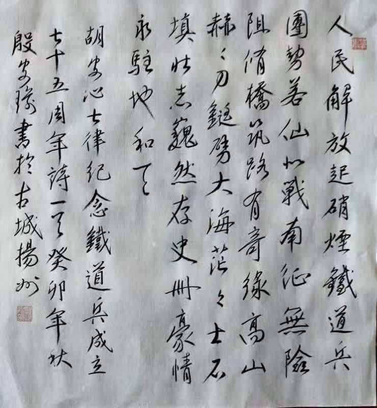 向上、向上,向上的手心稳稳的接住太阳;向上、向上,向上的掌心稳稳的托举心中不落的兵徽!它是历史的见证:见证着铁道兵功勋的不朽;见证着青春芳华的我们!
