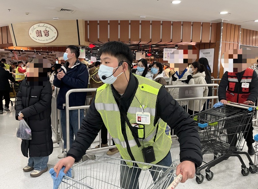 新年前一周,顾客要排两三个小时的长队,才能进入天使城的胖东来超市。 杨书源 摄