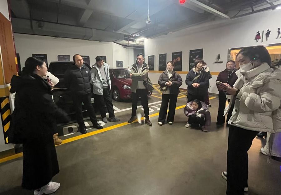 记者在胖东来地下车库遇到的另一个游学团。 杨书源 摄