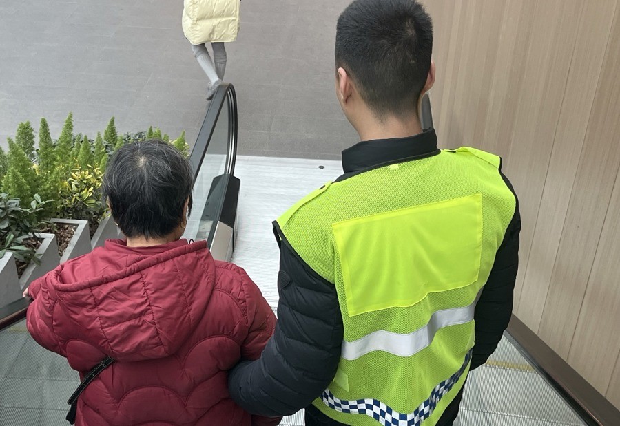 胖东来的员工被要求见到年长的老人要搀扶其上下楼。 杨书源 摄