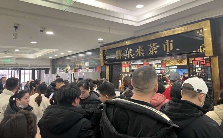 胖东来的代购重灾区东来茶市,在营业时间几乎总是围满了人。 杨书源 摄