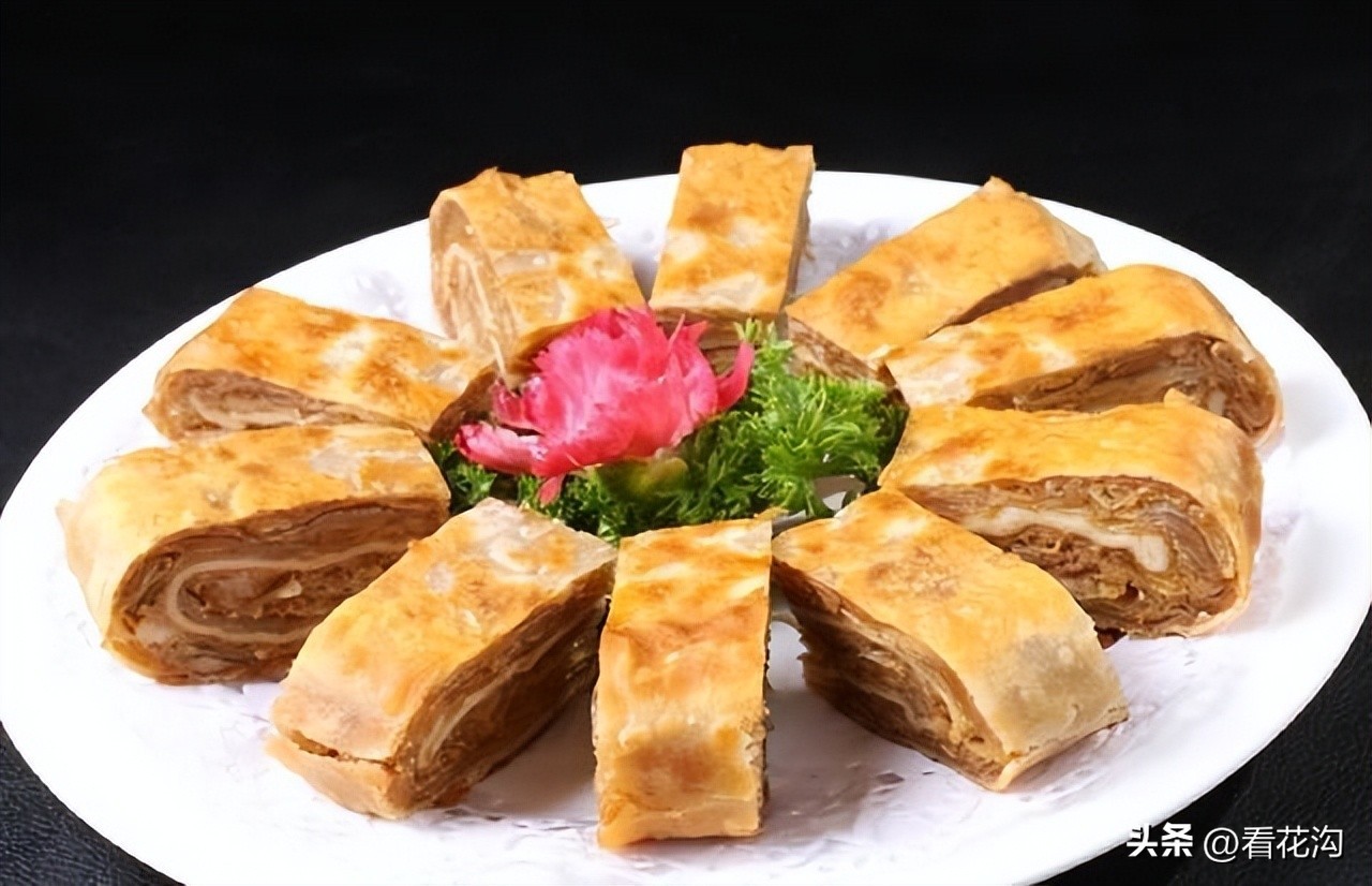 36.内黄县的地方美食-梁庄状馍。产于内黄县梁庄镇,是用精制面粉擀成面片,将瘦肉、大葱等用调料拌成馅夹在中间,在煎盘上煎烤、油烙而成。其中,尤以梁庄状馍较为出名。梁庄状馍,始于乾隆年间。相传乾隆年间,有一书生中了头名状元,梁庄好友为庆贺其金榜题名,在御宴上把自家制的面饼呈上供皇上、状元用膳,皇上品尝后赞不绝口道:这一佳品入口焦中有绵,酥中有咸,脆中有甜,味道多感。圆象征团团圆圆,烤色金黄象征前程似锦,状元食的馍就叫状馍吧。