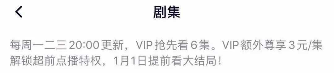 即使后来被官方警告,“超前点播”的做法稍微有点收敛,但还是保留了3元1集的提前解锁方式,这对普通用户和普通VIP用户难道不是一种伤害么?