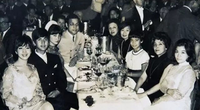 1967年,黎婉华(右二)带着大女儿何超英(左一)、何猷光(左二)、何超贤(右三)等人到法国丽都夜总会吃饭
