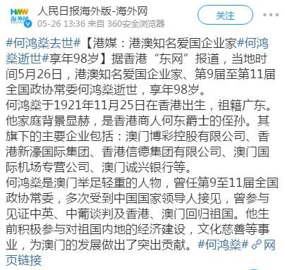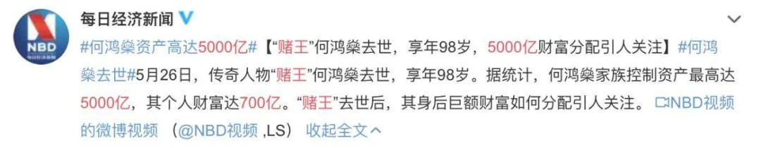故事从26号上午还在微博上看见 #何鸿燊病危,被辟谣# 的消息,结果下午港媒就爆出新闻:
