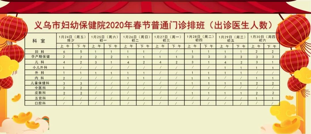 春节假期就医看这里!义乌多家医院门诊安排出炉