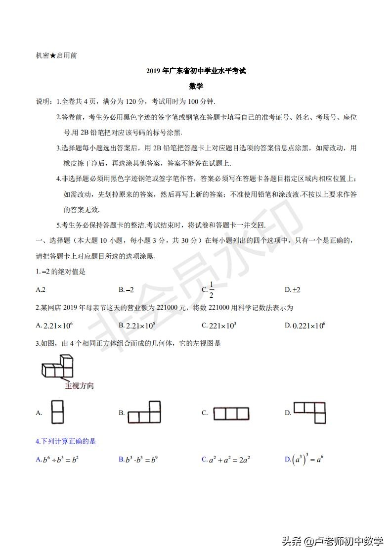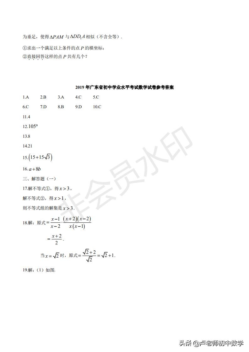 2019年广东省中考数学考试试卷(含答案)