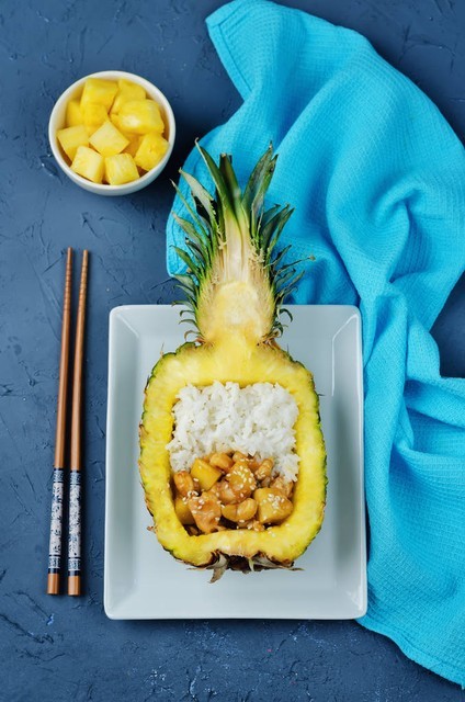 菠萝切块,备用。鸡胸肉切块,备用。生姜、大蒜切末,备用。将盐、生抽、料酒、淀粉加入鸡胸肉块中,拌匀腌制 10 分钟。锅中烧水,水开后放入腌制好的鸡胸肉块,煮至肉色变白。热锅凉油,待油热后放入生姜末、大蒜末,煸炒出香味。加入煮好的鸡胸肉块,煸炒至熟透。加入切好的菠萝块,煸炒均匀。根据个人口味加入盐、生抽、料酒,调味。最后加入水淀粉勾薄芡。盛出,即可食用。
