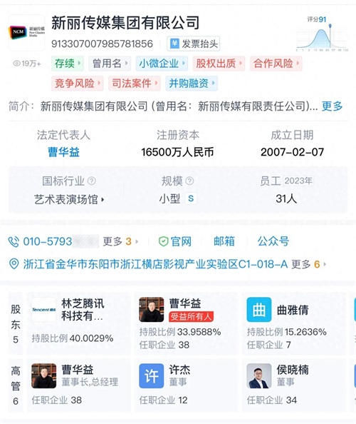 新丽艺人的商务分约都签在曹华益和张天龙合开的星益传媒。