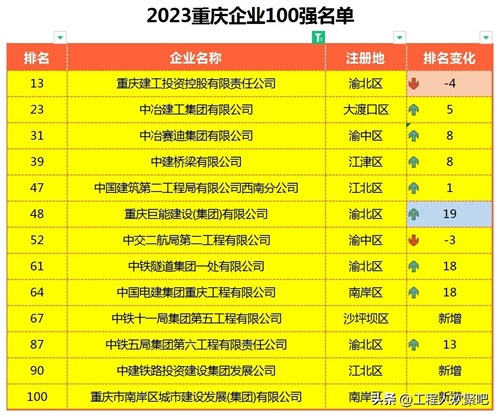 2023重庆企业100强丨13家建筑施工企业,你都熟悉吗?