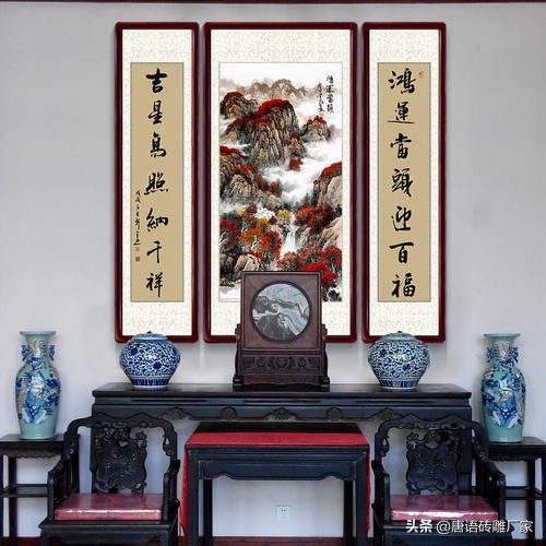 堂屋并不是简单而普通的一个居室,不能单单从技艺特征和审美角度来看它。要想真正了解堂屋,离不开某种特定文化环境。堂屋里常常悬挂字画或摆放古玩等传统装饰物件,而中堂字画和中堂书法则更严谨。中堂字画的内容大多选择锦鲤鳜鱼、荷花牡丹、松鹤等题材,体现主人对年年有余、荣华富贵、健康长寿的美好愿望。而中堂书法,也多是治家理财、保佑全家平安为主要内容。