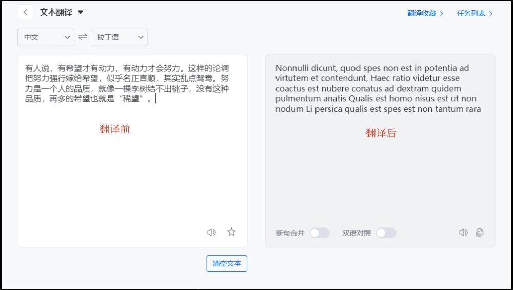 中文翻译拉丁文的软件哪个好?小时在一家跨国公司上班,最近老板给他安排了一项工作,要他尽快整理出业务洽谈的文件资料。由于客户是外国人,说拉丁文,所以他需要把一些文件资料翻译成拉丁文,这一下子可难到他了,想要翻译,中文翻译成拉丁文的软件哪个好呢?下面的两个翻译方法,有需要的朋友可以收藏下。