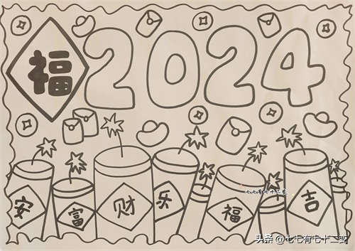 新年主题画,新年快到了,分享一幅2024新年主题儿童画,简单易学