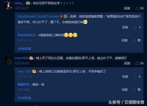 这位球迷很愤怒:“为什么你没奶死英格兰!!”有网友开导这位老哥:“90分钟打平菜经,乌贼刘都帮你排除了英格兰胜,还要怎么样?应该是J罗不上的原因,能怪我乌贼女神?”