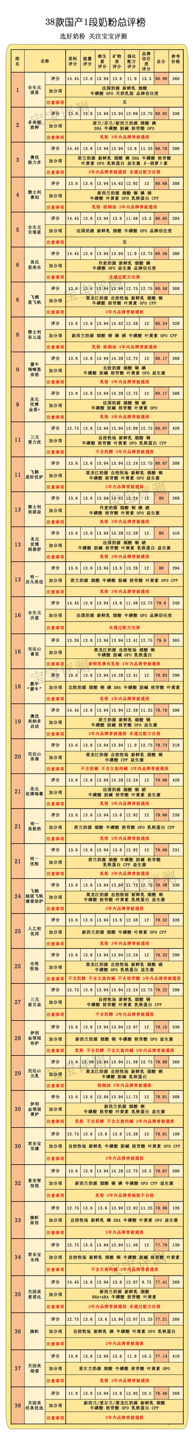 好啦,本期的国产1段奶粉横评到这儿就结束了。再次提醒大家,国产营养2、3段奶粉的横评近期也会陆续发布,敬请期待噢!