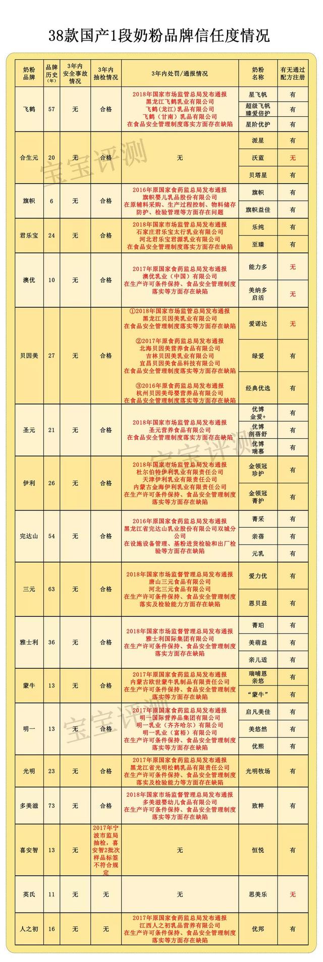 因此,这次笨爸爸将它列为横评的指标之一,具体评判由品牌历史、3年内是否出现过安全事故、3年内是否被抽检过不合格、3年内是否被处罚(通报)过,以及产品配方是否已经通过了国家食药监局的注册,5方面组成。