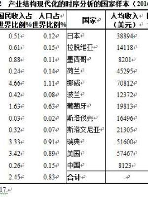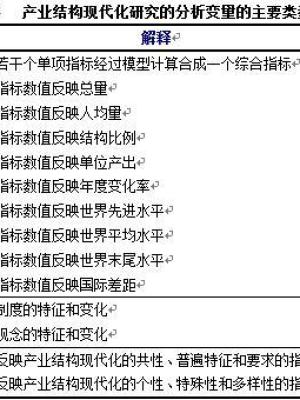 由于产业结构现代化的研究对象非常复杂,一项研究不可能对它的所有方面和全部过程进行分析。比较合理和有效的方法是选择有限的关键变量进行分析。分析变量的选择,需要考虑三个因素:具有学术风险或政策意义,便于国际比较和分析,可以获得连续数据或资料。