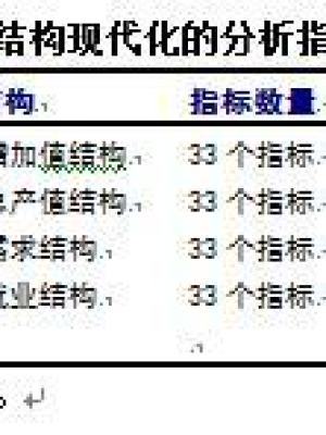 一般而言,人均指标、结构指标、效率指标和共性指标,可以用于产业结构现代化的定量评价;总量指标、增长率详细指标、定性指标和个性指标,可以用于产业结构现代化的特征分析。