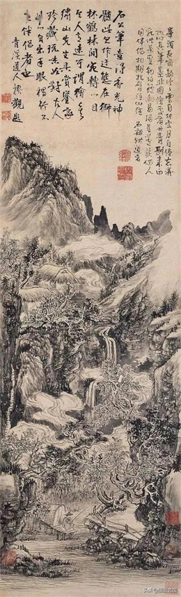 下许多山水佳作。接下来简探髡残和尚的山水特点。