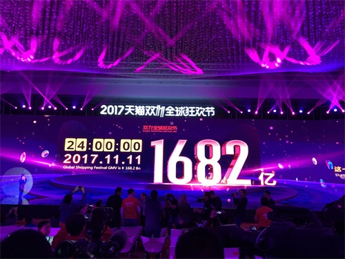 破纪录!2017年双11成交额1682亿,比去年多475亿!