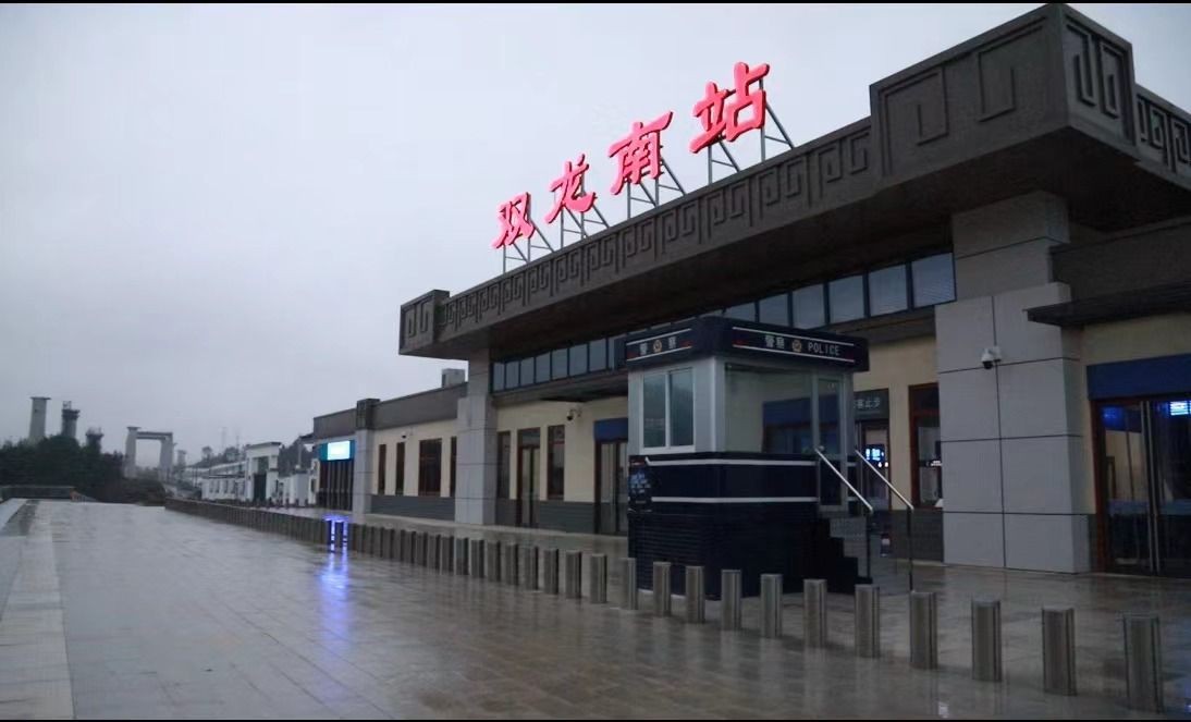 双龙南站,其配套设施项目包括站前景观广场、配套服务用房及出租车、公交车、社会车辆停靠场等。