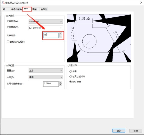 5.再点击“文字”这一栏将文字修改为15(这里这个数值根据图形的大小来调整,文字的数值要比箭头的数值大)