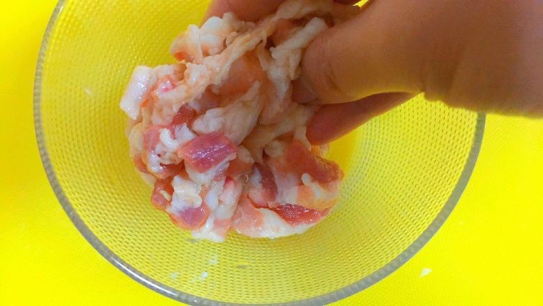 2.腌制肉丝,接上一步,我们把肉丝清洗干净后,我们挤干水分后,把肉丝装入碗中,现在就需要进一步腌制,具体分为几步: