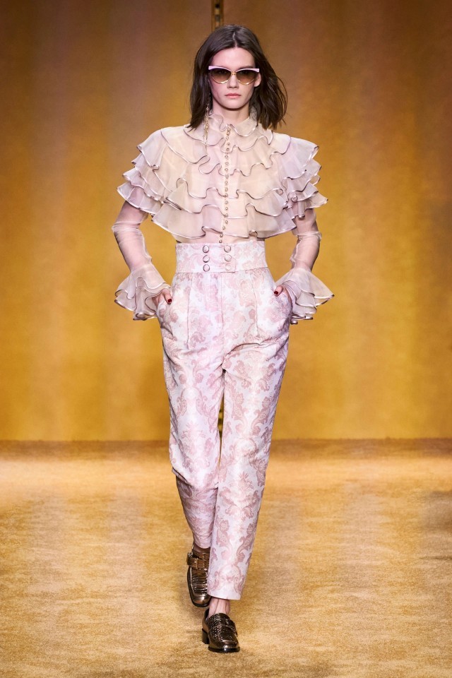 荷叶边的设计展示了灵动的仙气之感,光泽感很强的香槟包边勾勒出宫廷奢华的韵味。