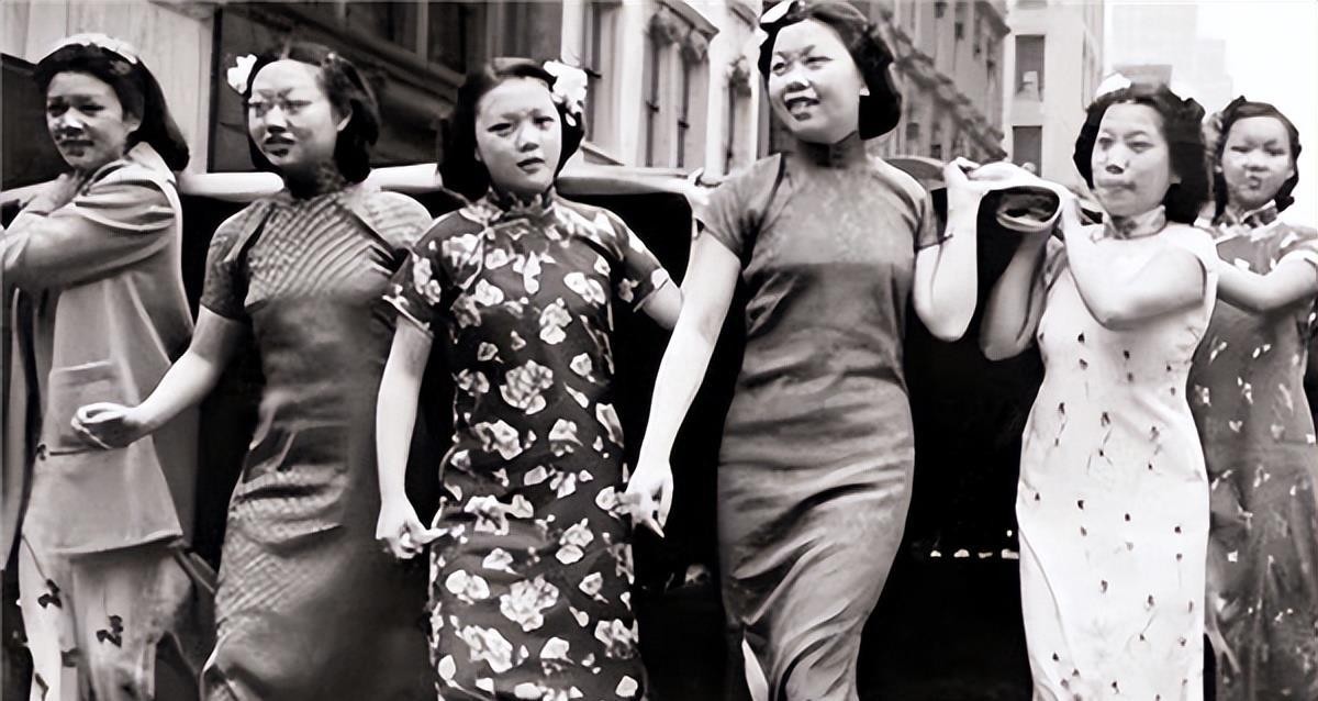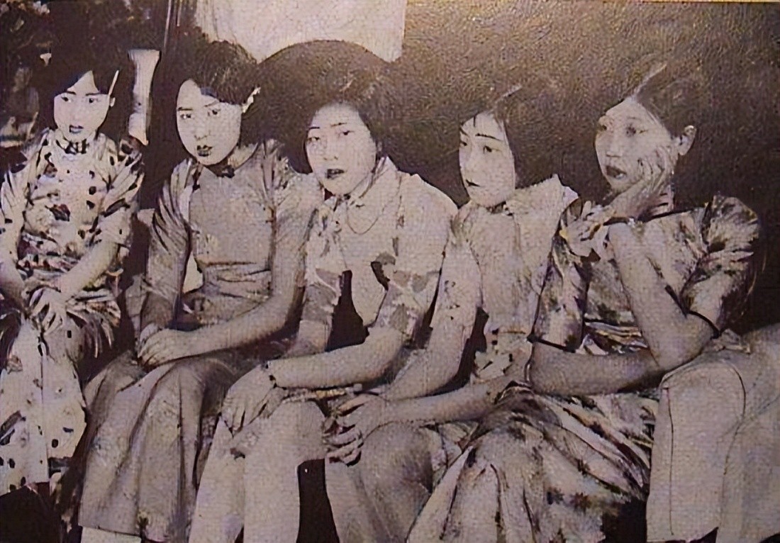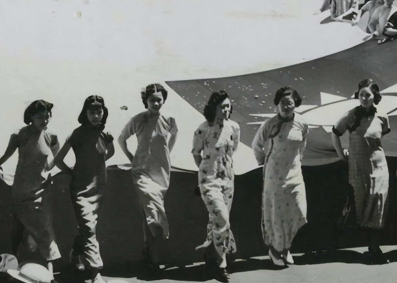 3、第一张照片中的女生们虽然姿色并不是上等,但是每一个人都穿旗袍,抹口红在当时可以说打扮的十分摩登。