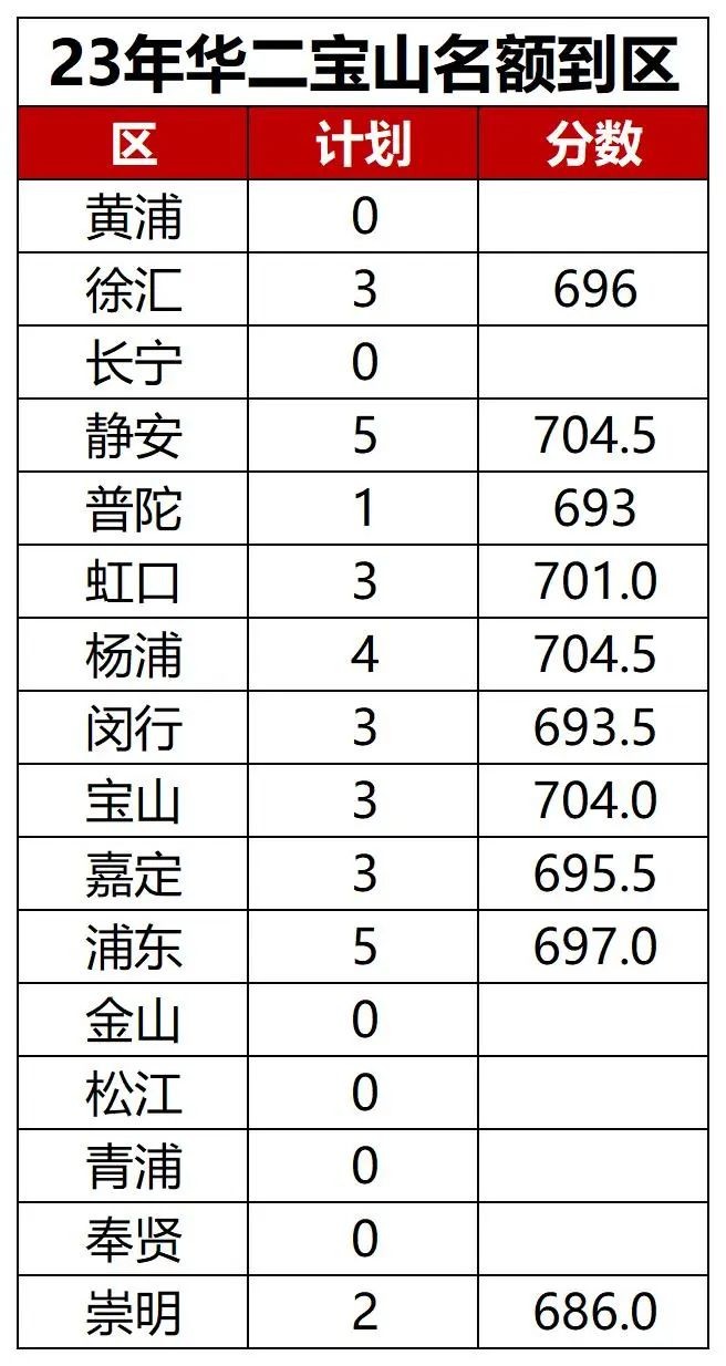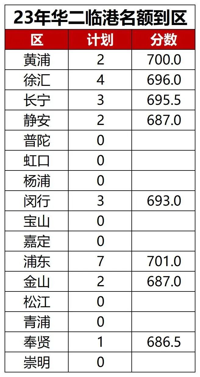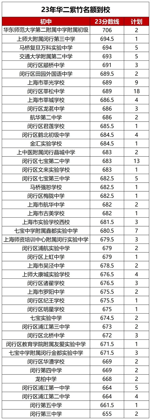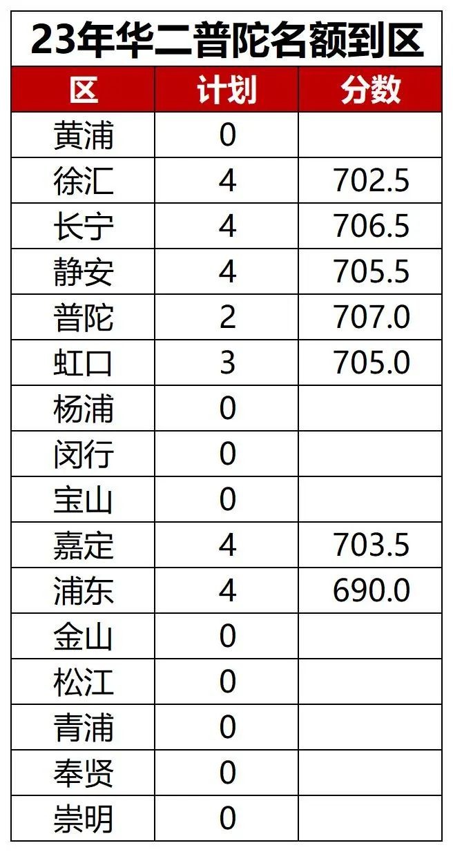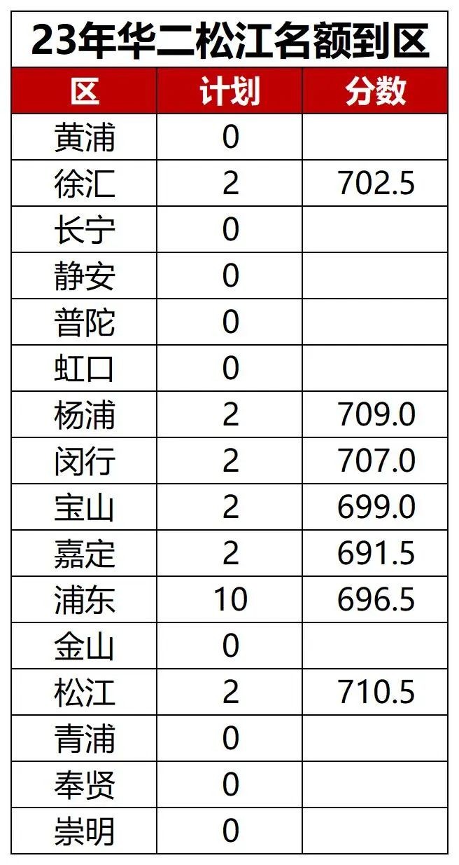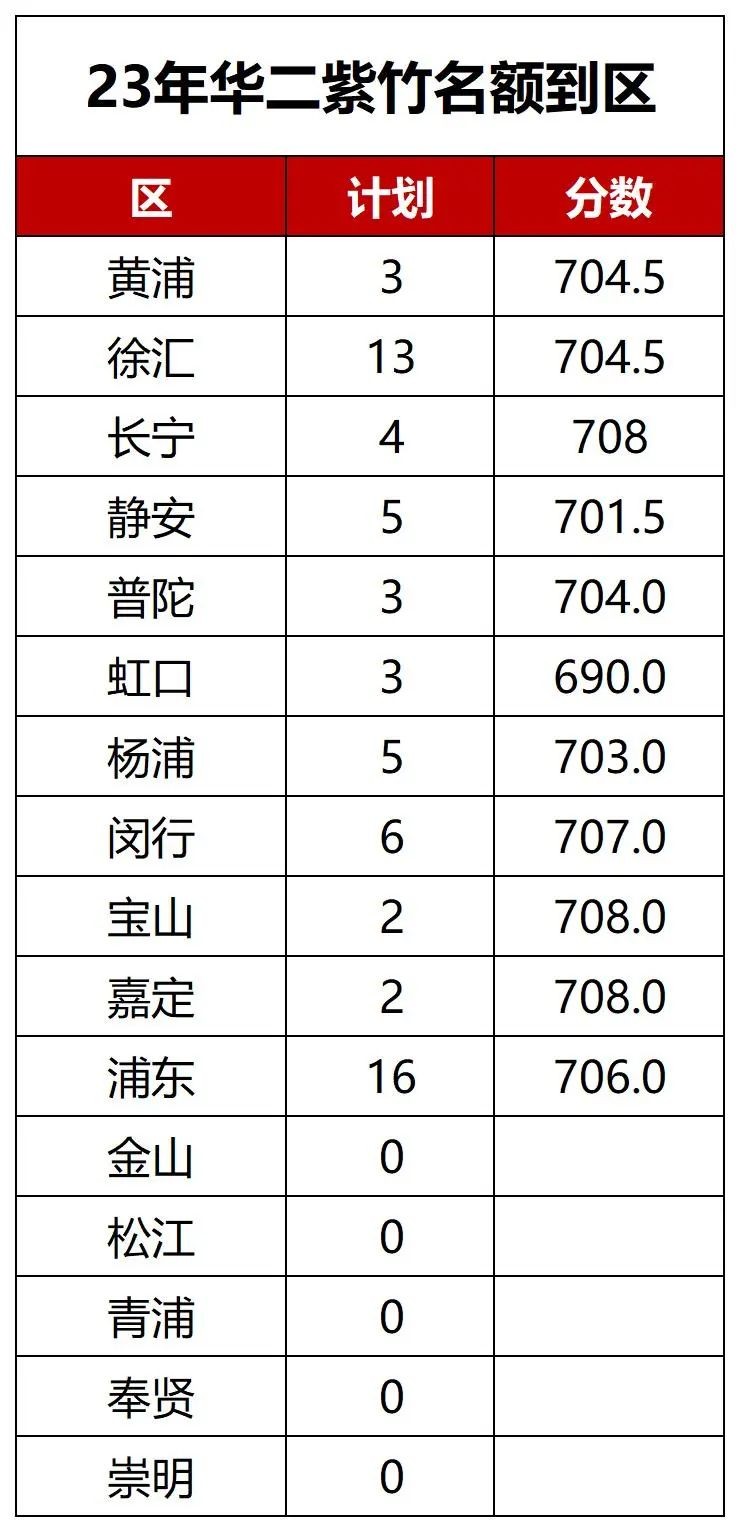 华二紫竹名额分配到区,投给浦东和徐汇的名额比较多,不过人数多分数线也不低的,反而是名额少的虹口分数线比较低: