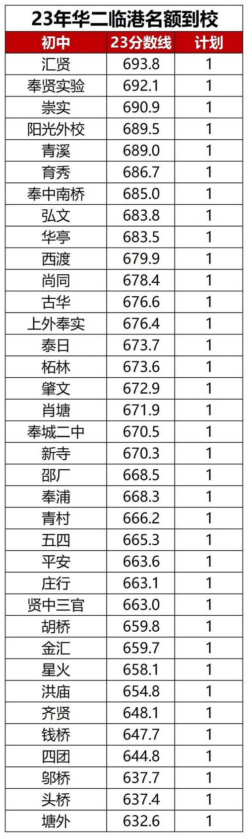 23年第一届招生,平行志愿分数线676.5,相比奉贤中学低了一些,录取分也是华二5所分校当中最低的。